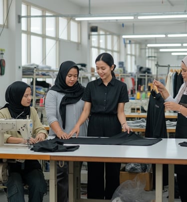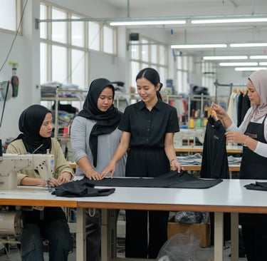 Kami menyediakan layanan jahit berkualitas tinggi dengan tenaga ahli untuk memenuhi kebutuhan produksi fashion Anda secara efisien dan tepat waktu.